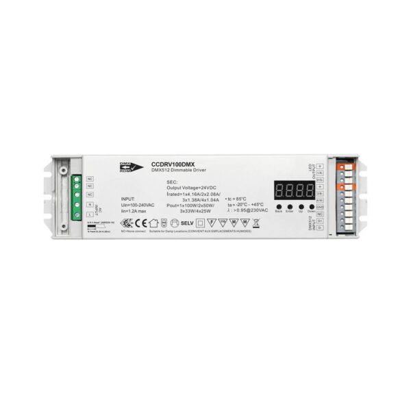 All-in-One Driver (DMX) för RGBW/RGB med 24 V DC konstant spänning, fyra kanaler (RGBW), DMX-styrning och flera styringångar för integration med olika kontrollsystem.
